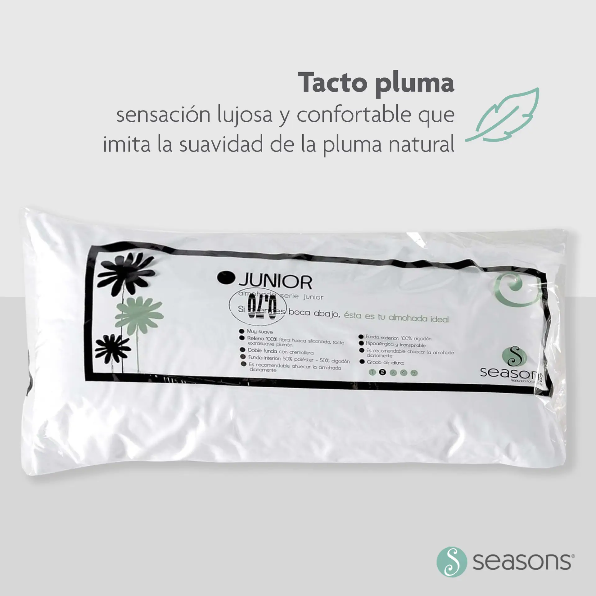 - Tacto pluma: Sensación lujosa y confortable que imita la suavidad de la pluma natural.