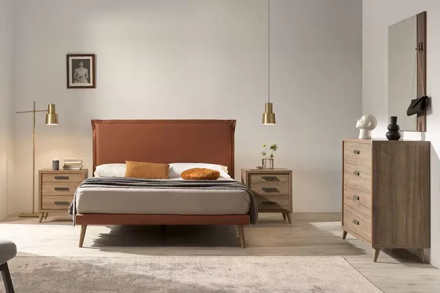 Nuestro modelo Cama D-line , formada por base tapizada tapizada en tejido o polipiel y cabecero,tiene un diseño elegante perfecto para cualquier tipo de entorno. Su estructura ha sido creada con madera maciza de 25 mm de espesor. La pata es de madera maciza de 210 mm.