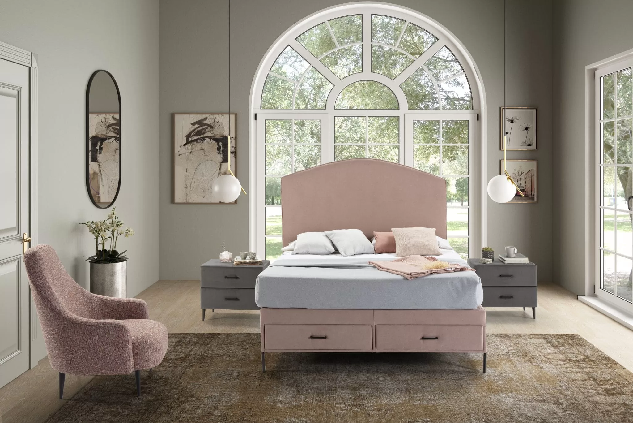Cabecero fabricado sobre tablero de madera de pino, con acolchado de espuma de 30 kg de densidad y fibras adicionales y tapizado en polipiel de alta calidad.