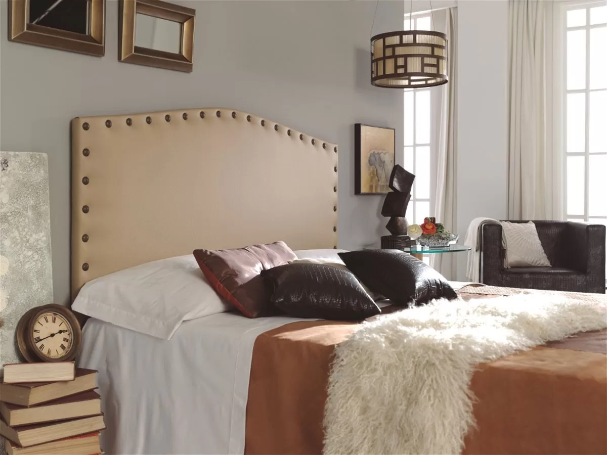 Moderno cabecero de tela con tachuelas de gran grosor en el acolchado, 6 cms.