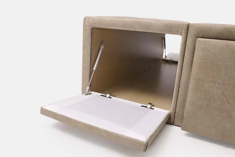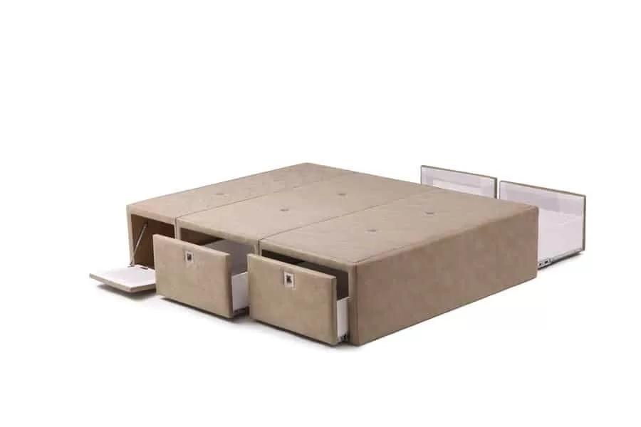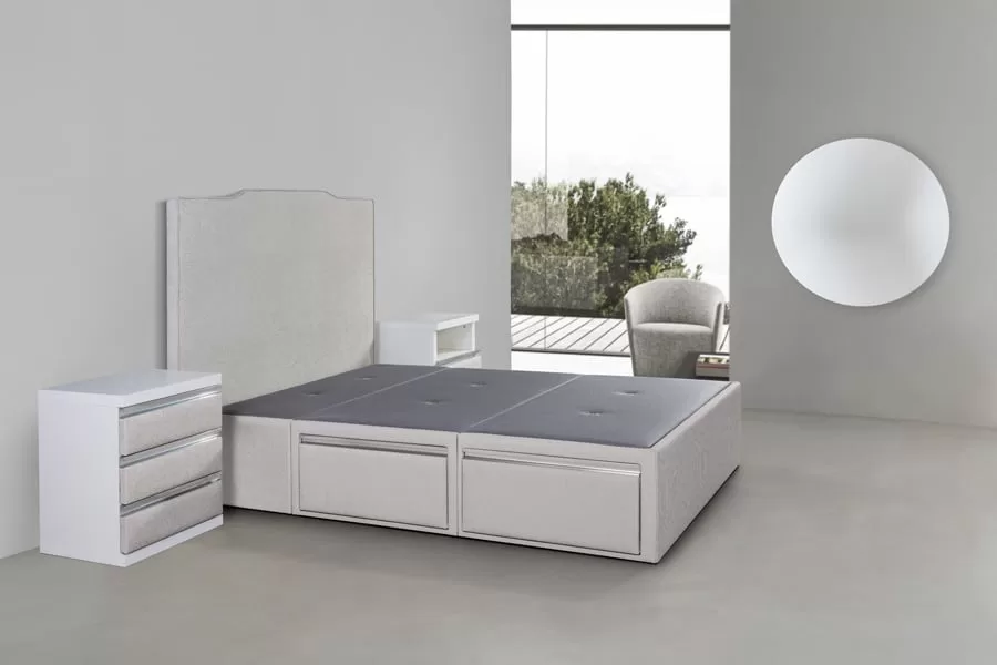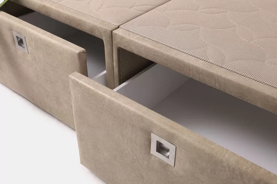 Canapé tapizado C-line con 3 cajones laterales en cada lado para facilitarte el orden y colocación en tu dormitorio. Descubre el verdadero sentido de tener un canapé altamente funcional en casa con materiales de primera calidad. Configúralo con opciones que lo ajustan a tu estilo de vida.