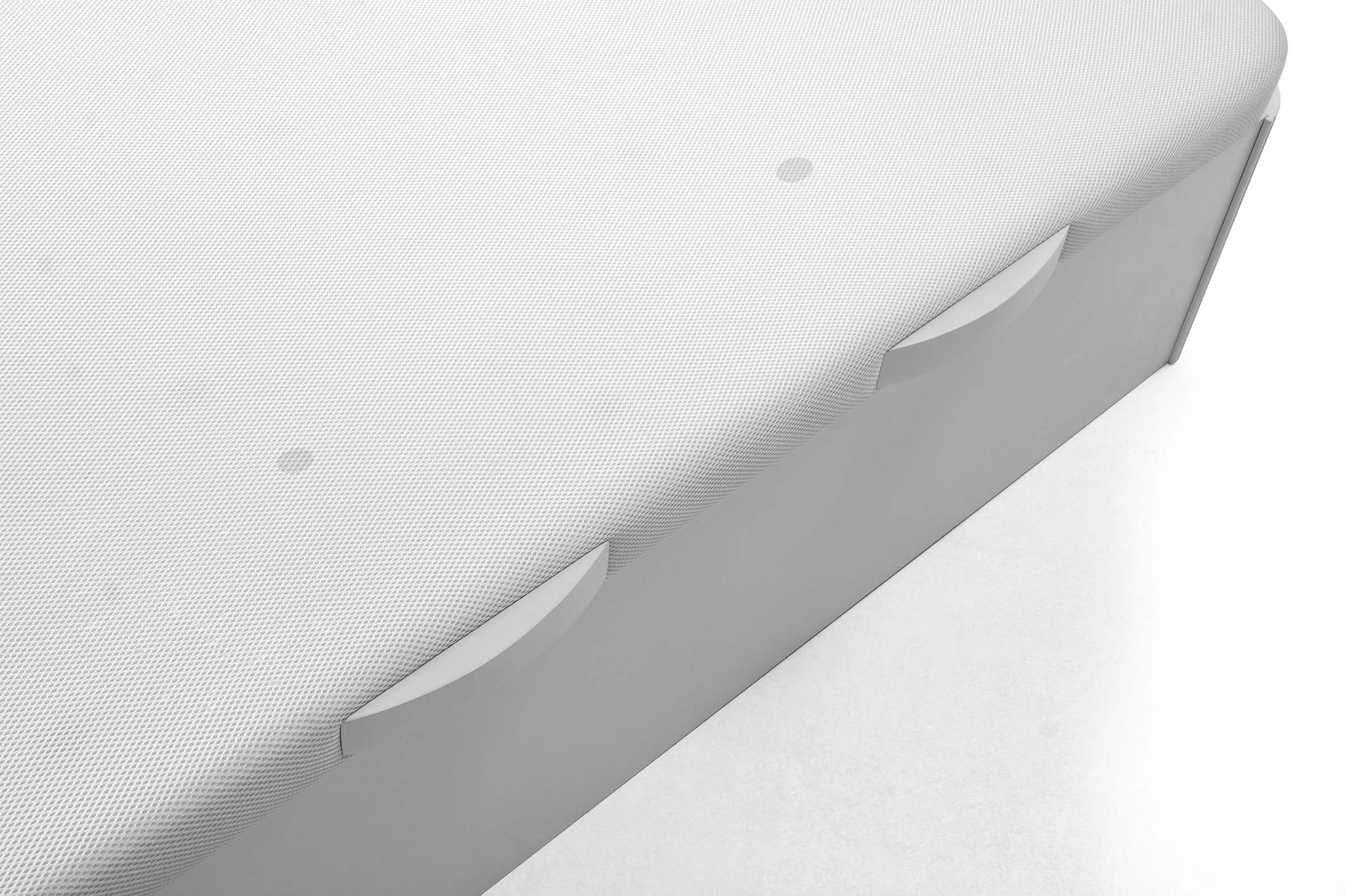En 135 y 150 DOBLE PISTÓN DE SEGURIDAD con tornillos laterales a 2,5cmGran ventilación y canalización del aire mediante un sistema de multiventilación activa Activent®, formado por canales de aireación , tapizada y foamizada con malla transpirable para lograr una ventilación, transpirabilidad y oxigenación continua en el colchón .