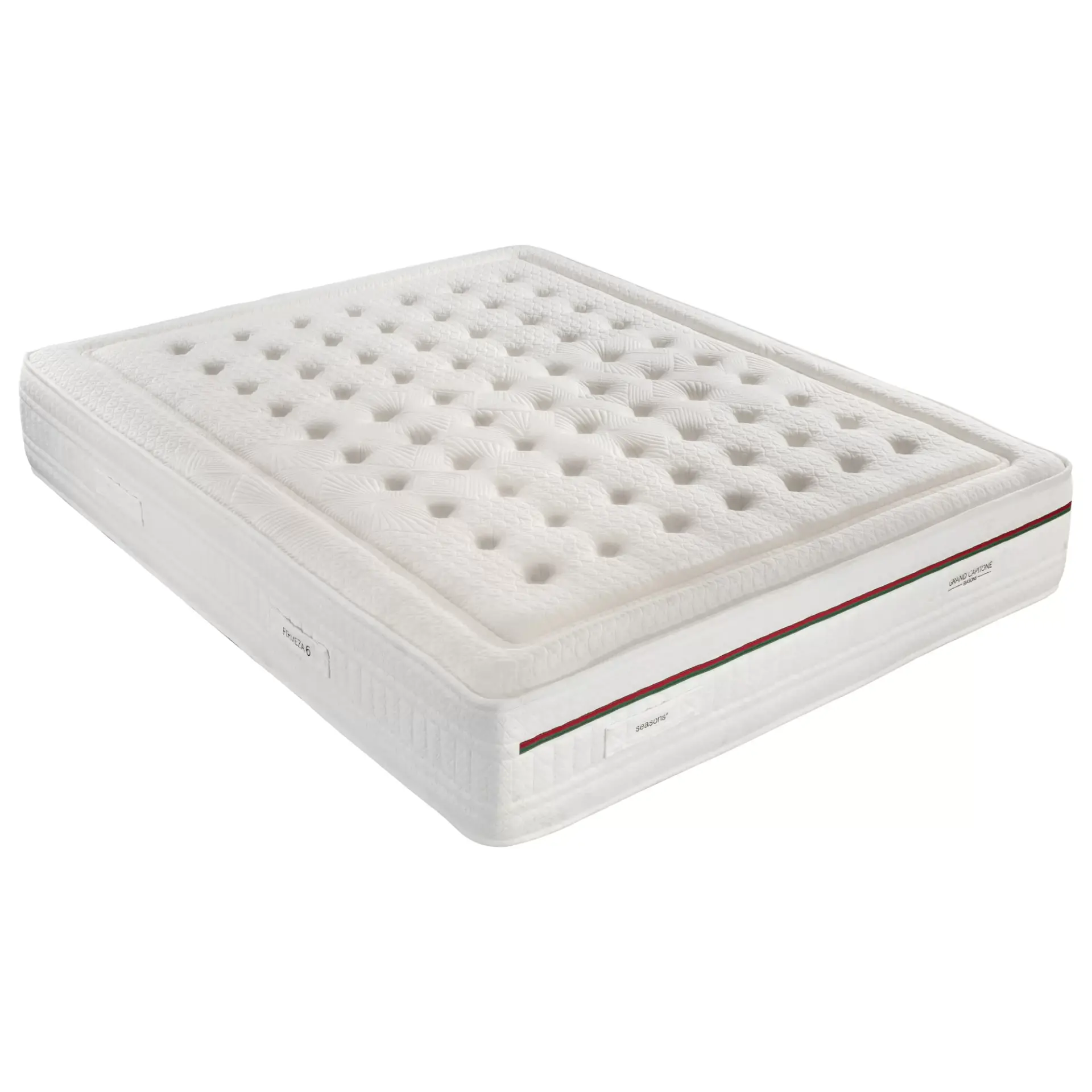 Multiacolchada. Acolchada y bordada en el piecero del colchón como sello de calidad Incorpora ocho asas de volteo a partir de 135 cms.