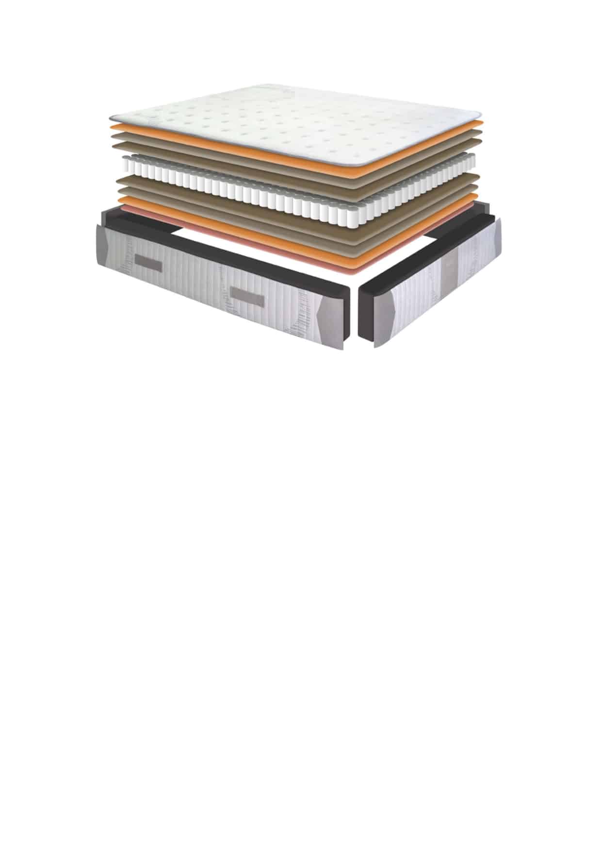 Tapa a Tapa: cada tapa del colchón en ambas caras, se realiza de forma independiente de tal forma que el dibujo queda enmarcado en el interior del colchón, logrando un máximo volumen y una correcta distribución de las presiones, minimizando los movimientos nocturnos.