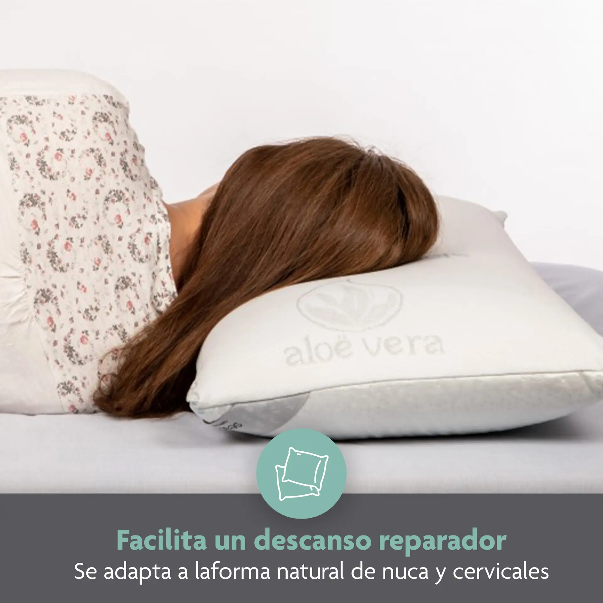 Almohada Viscoelástica Aloe Vera: Núcleo viscoelástico, termosensible y termoadaptable a la forma natural de nuca y cervicales.