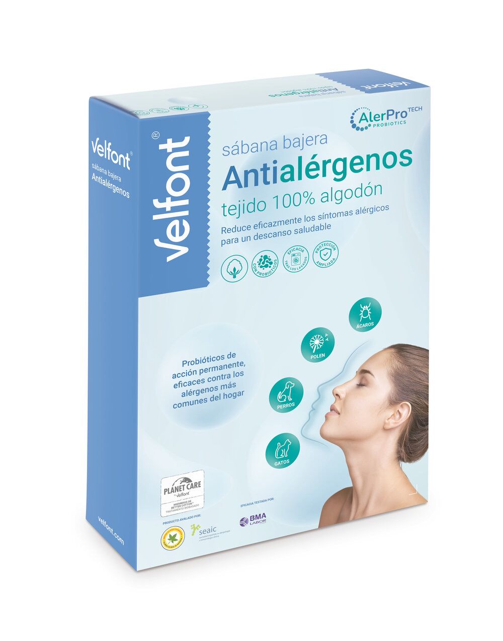Producto 2 en 1 que combina sábana y protector impermeable. Tratamiento probiótico de acción permanente resistente a los lavados.